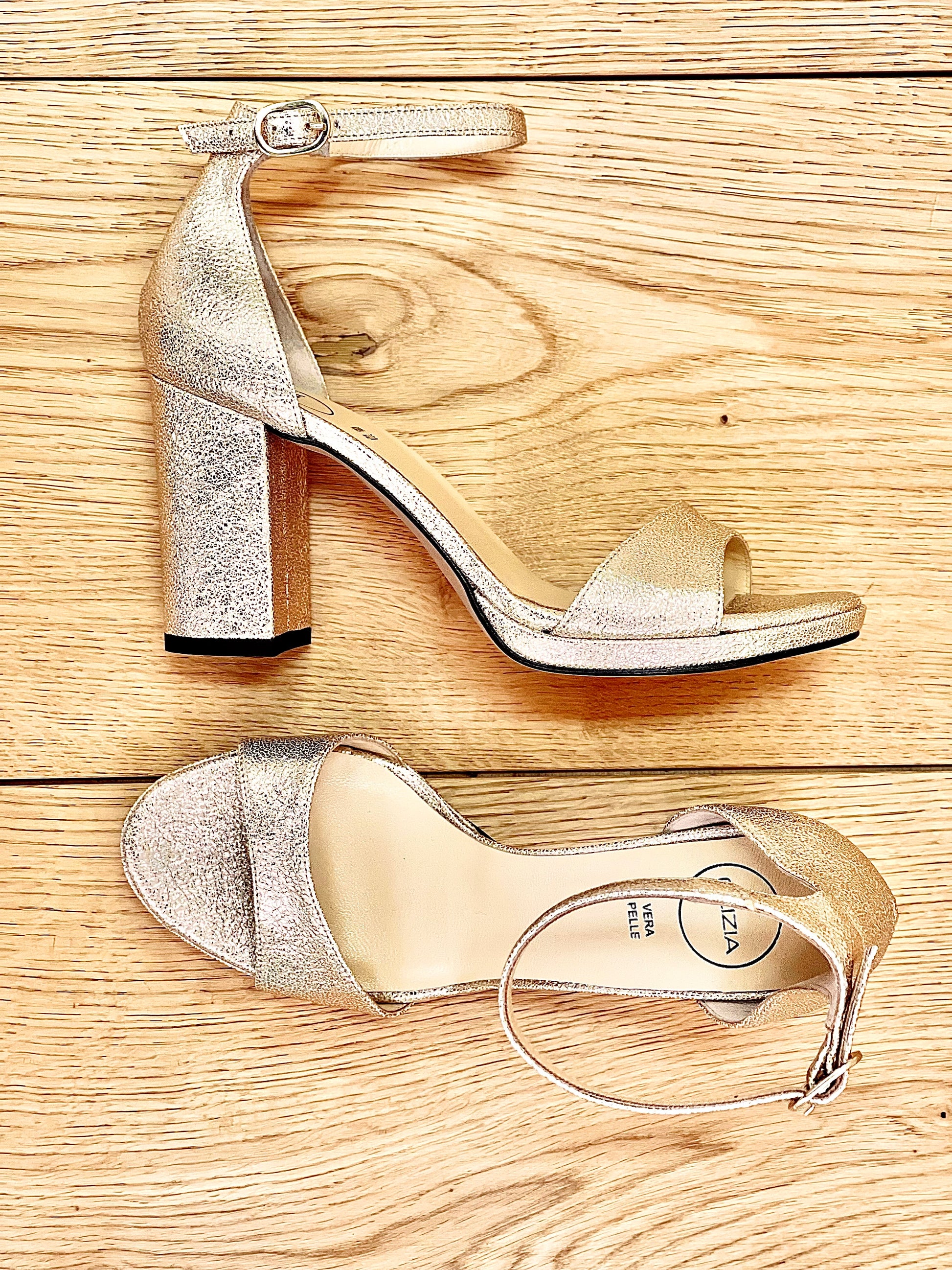 Sandálias com salto de 9 cm e plataforma de 1 cm.