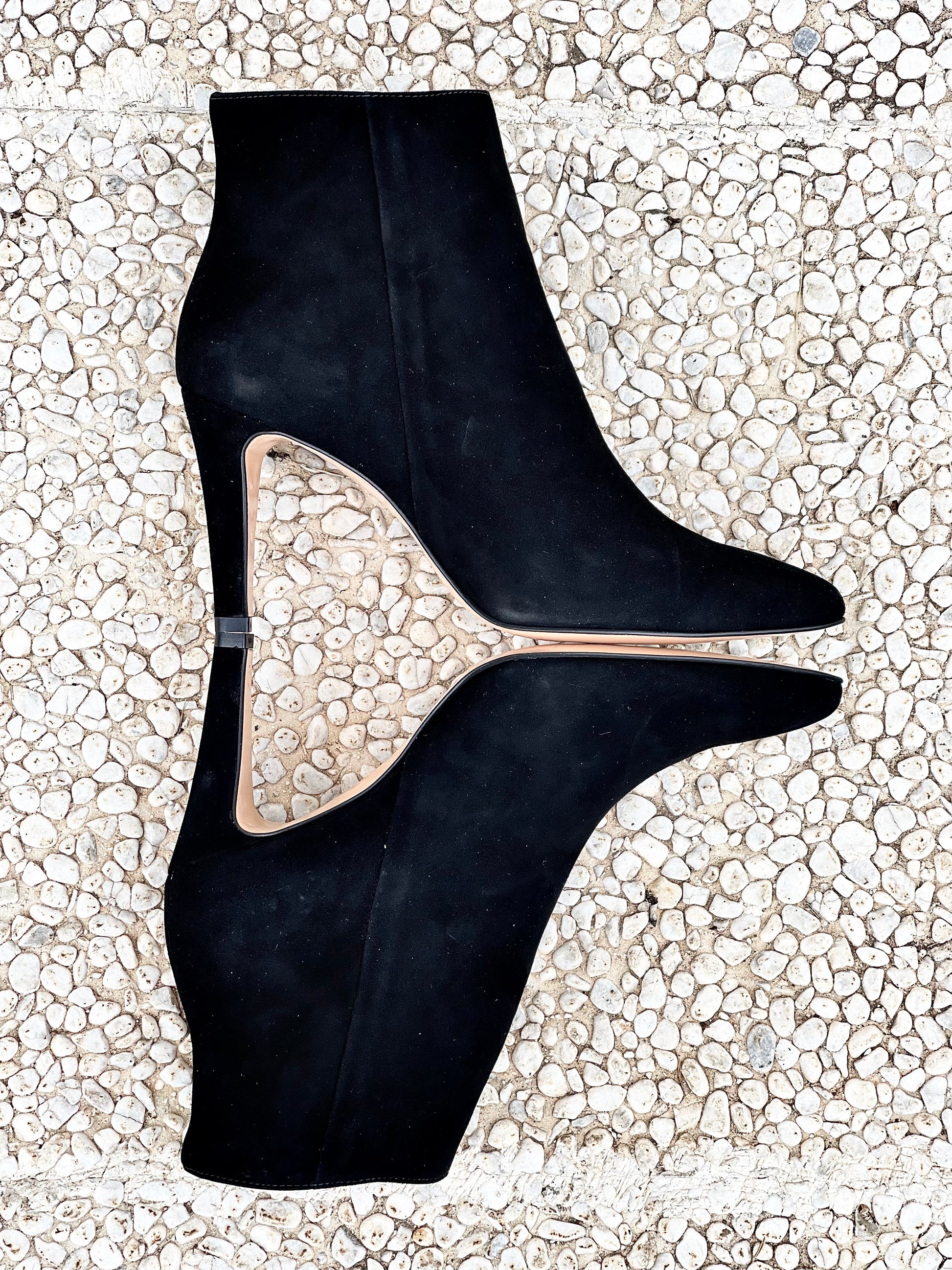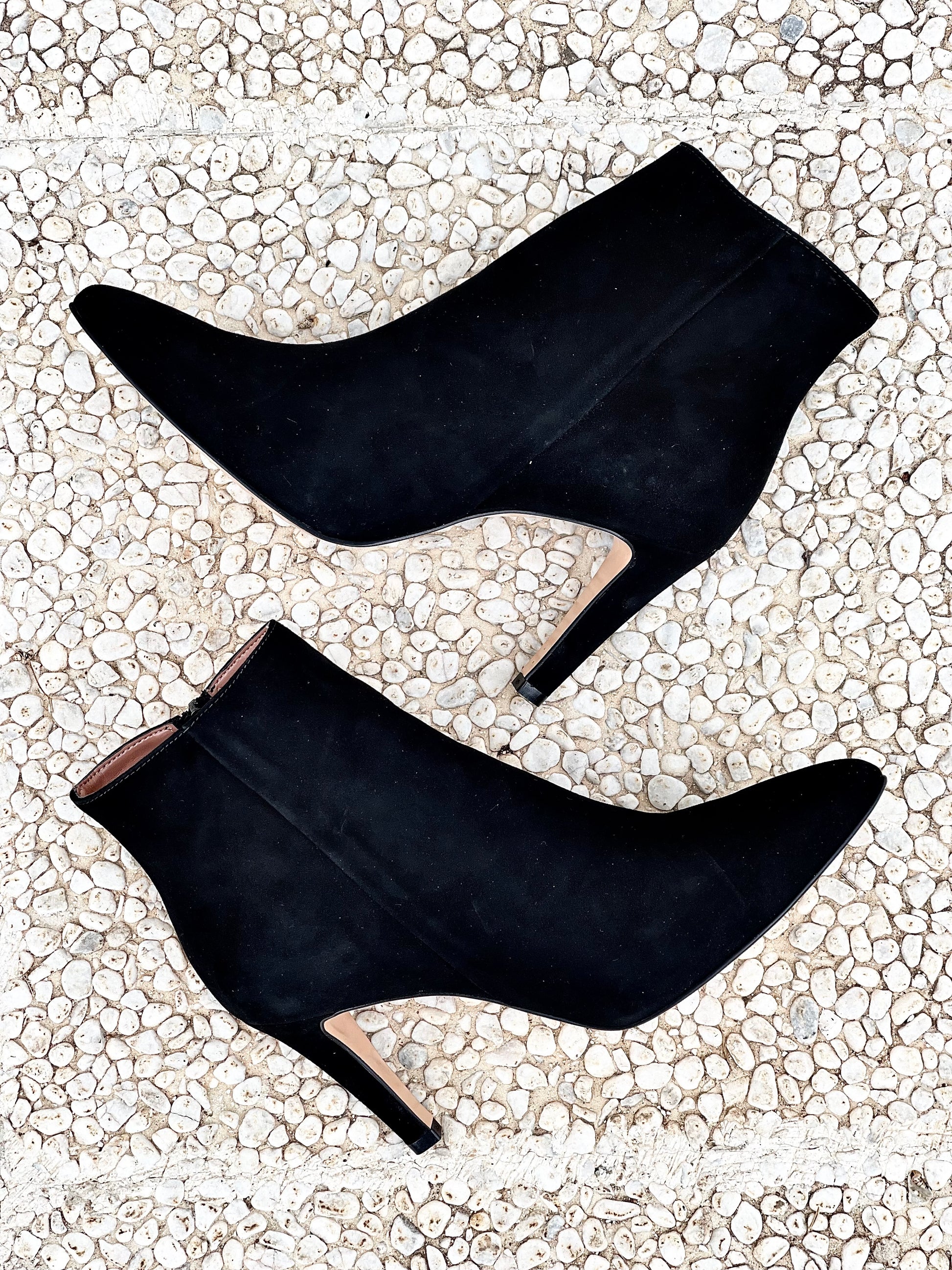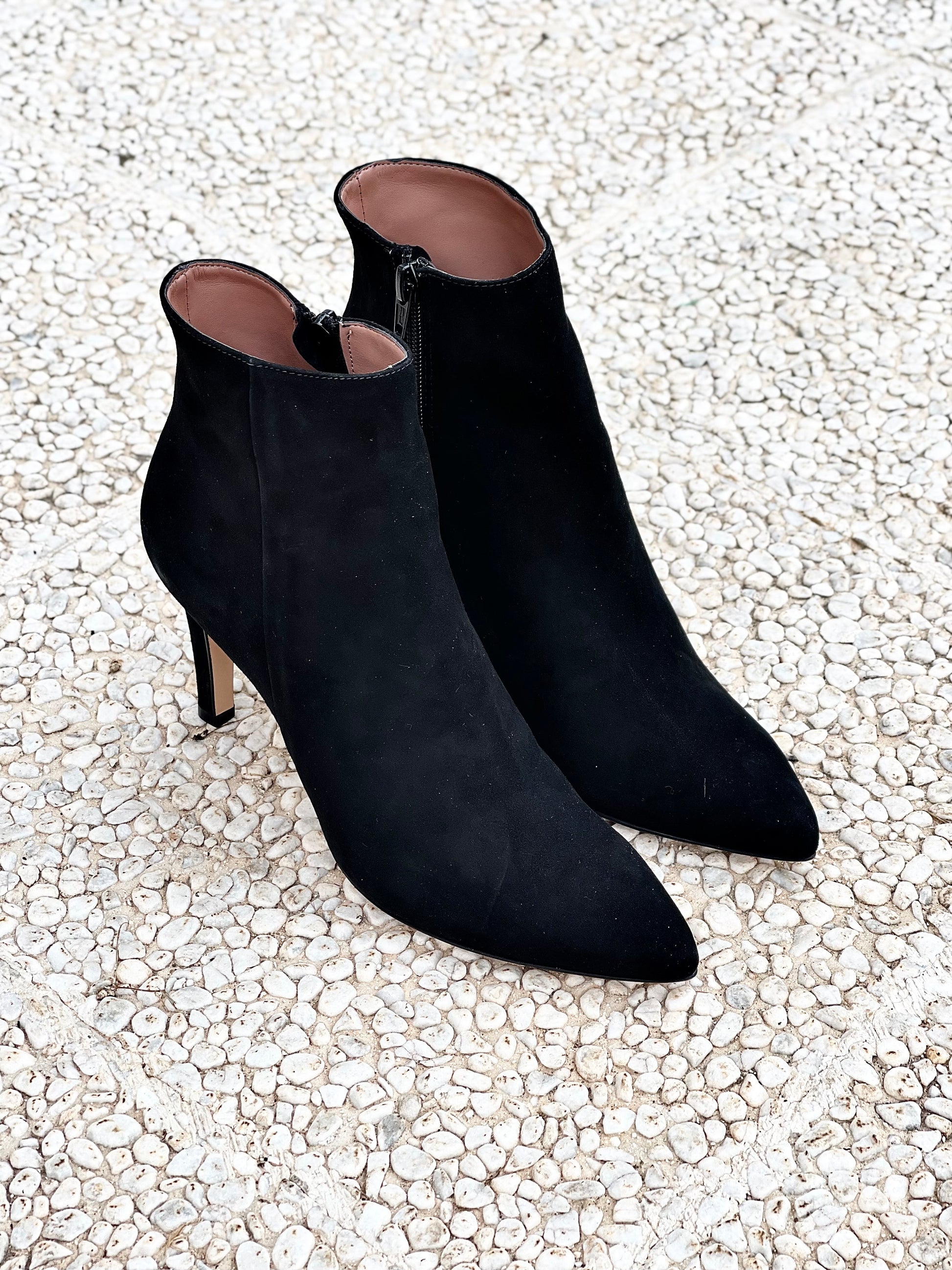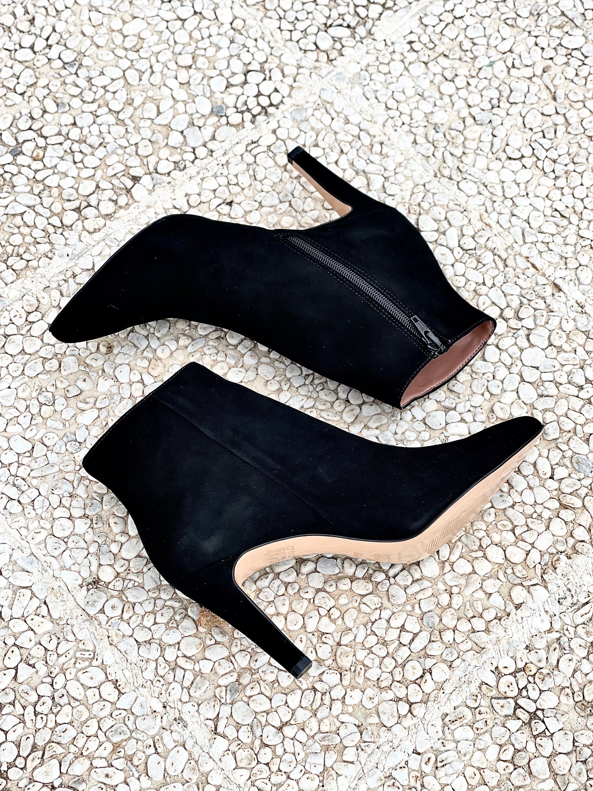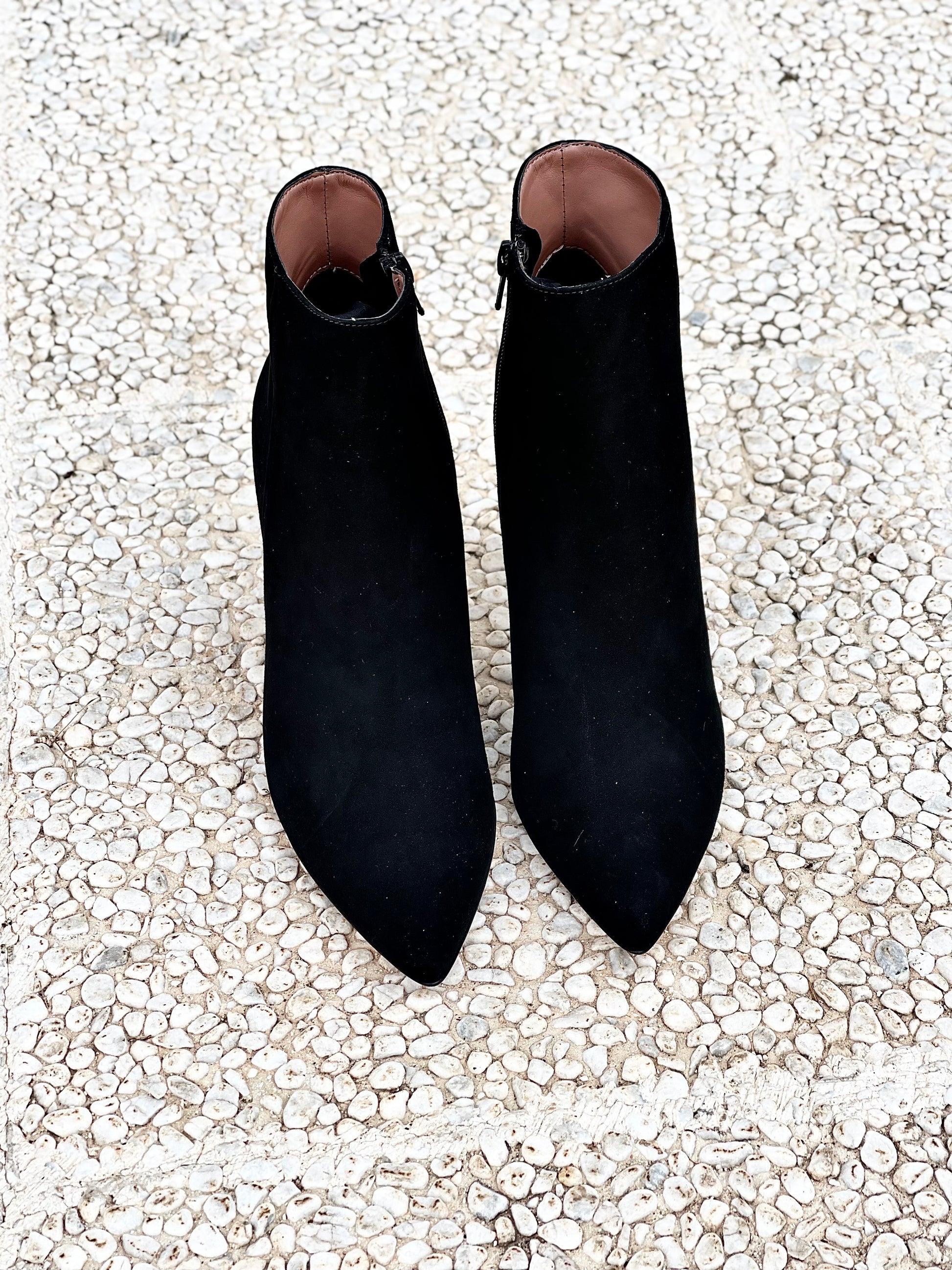 Bota de camurça pontiaguda com 85 mm de salto.