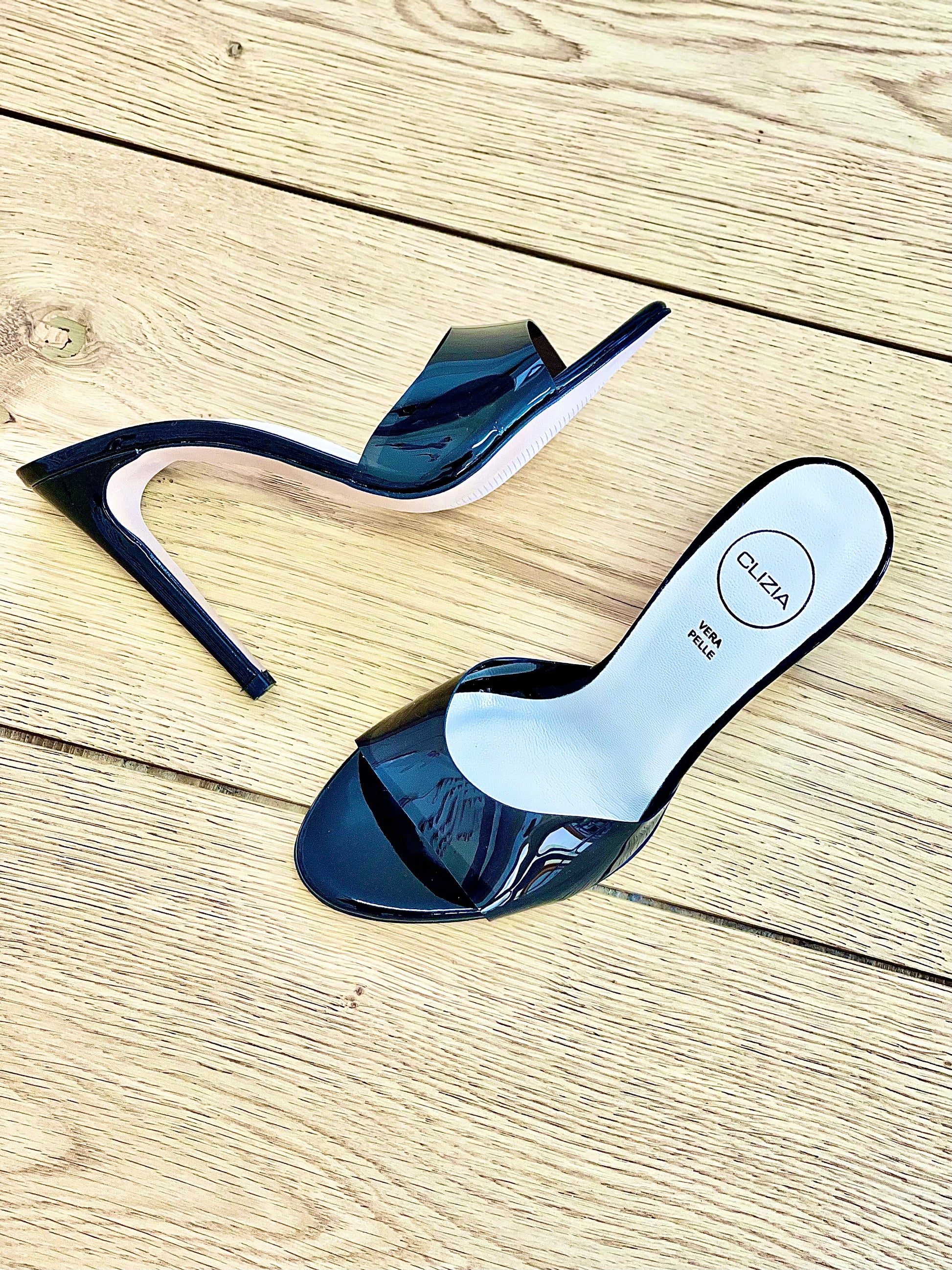 Sandálias mules altas em pvc transparente com salto agulha de 10cm.