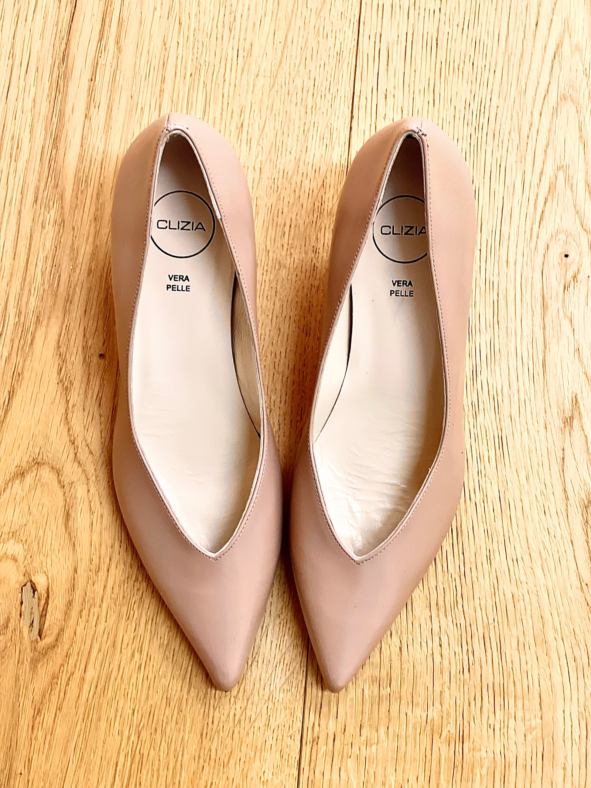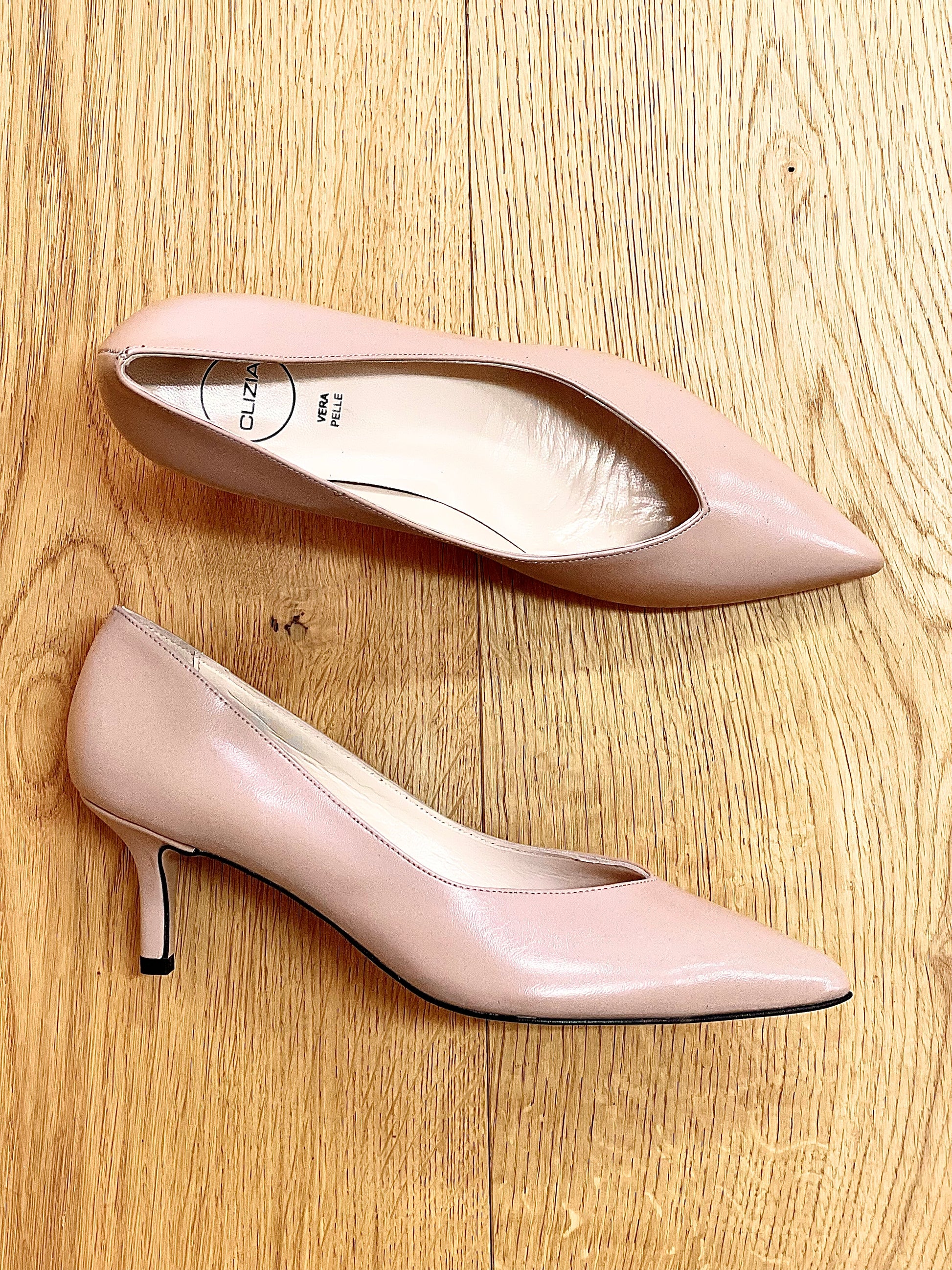 Bomba de dedo do pé pontiagudo com decote em V e salto de 6 cm.