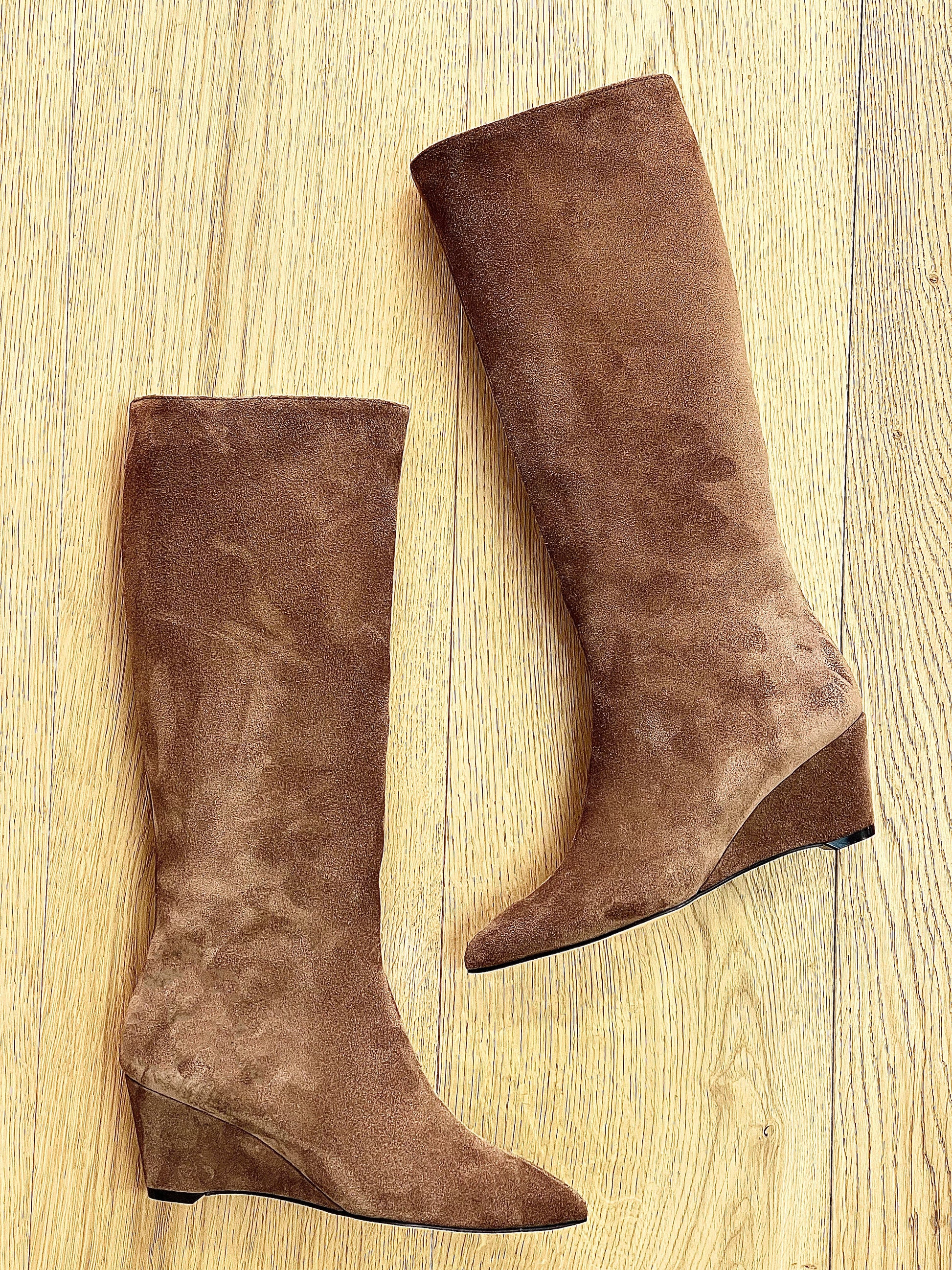 Botas tubulares de camurça com cunha na parte de trás de 6 cm.