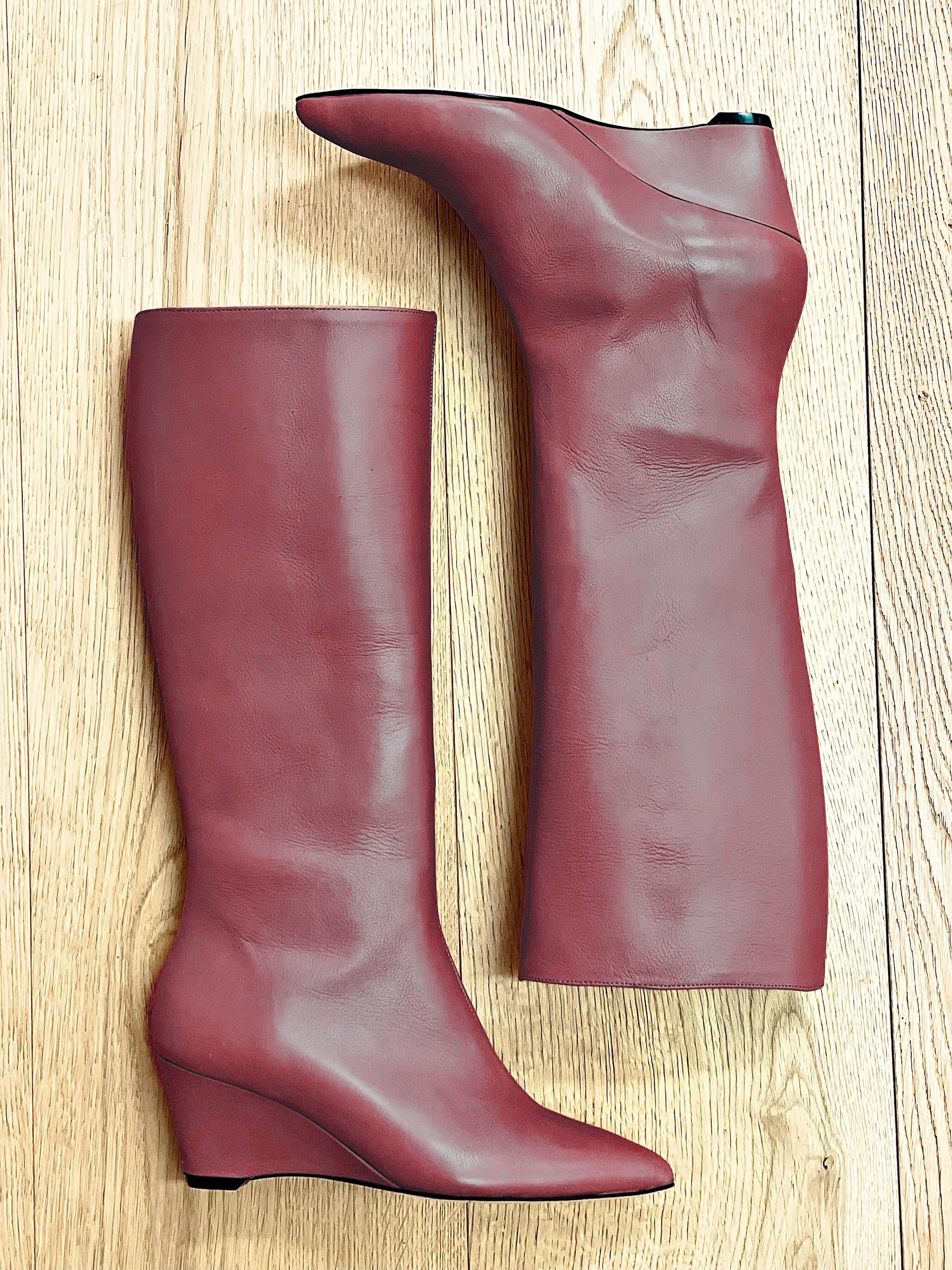 Botas tubulares em pele com cunha na parte de trás de 6 cm.