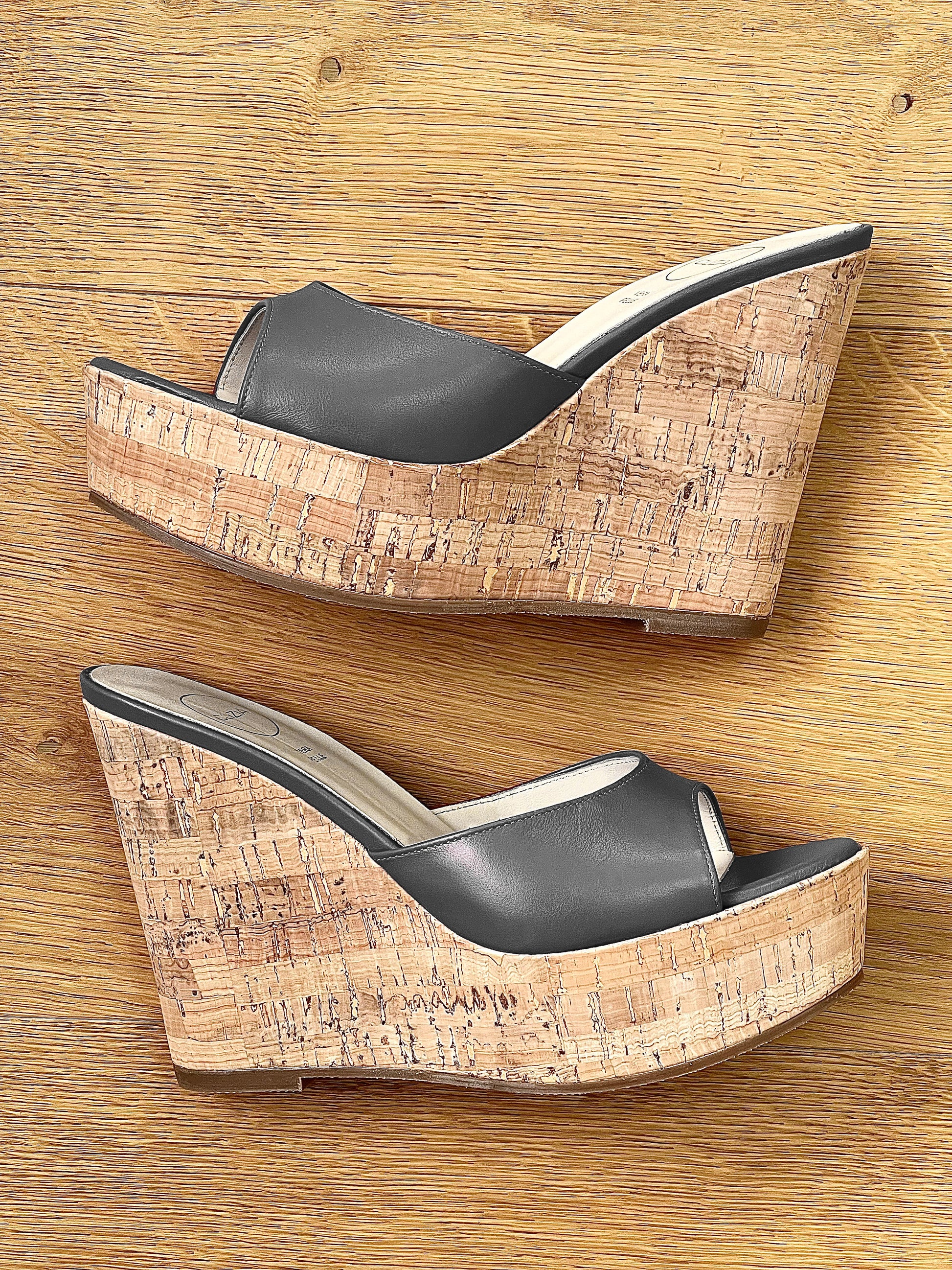 Sandale mules înalte cu pană de 11 cm.