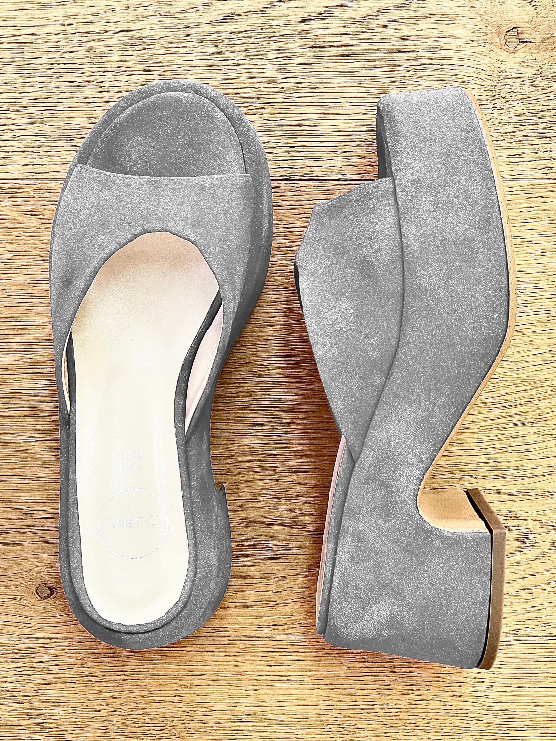 Sandale mules cu toc mediu.