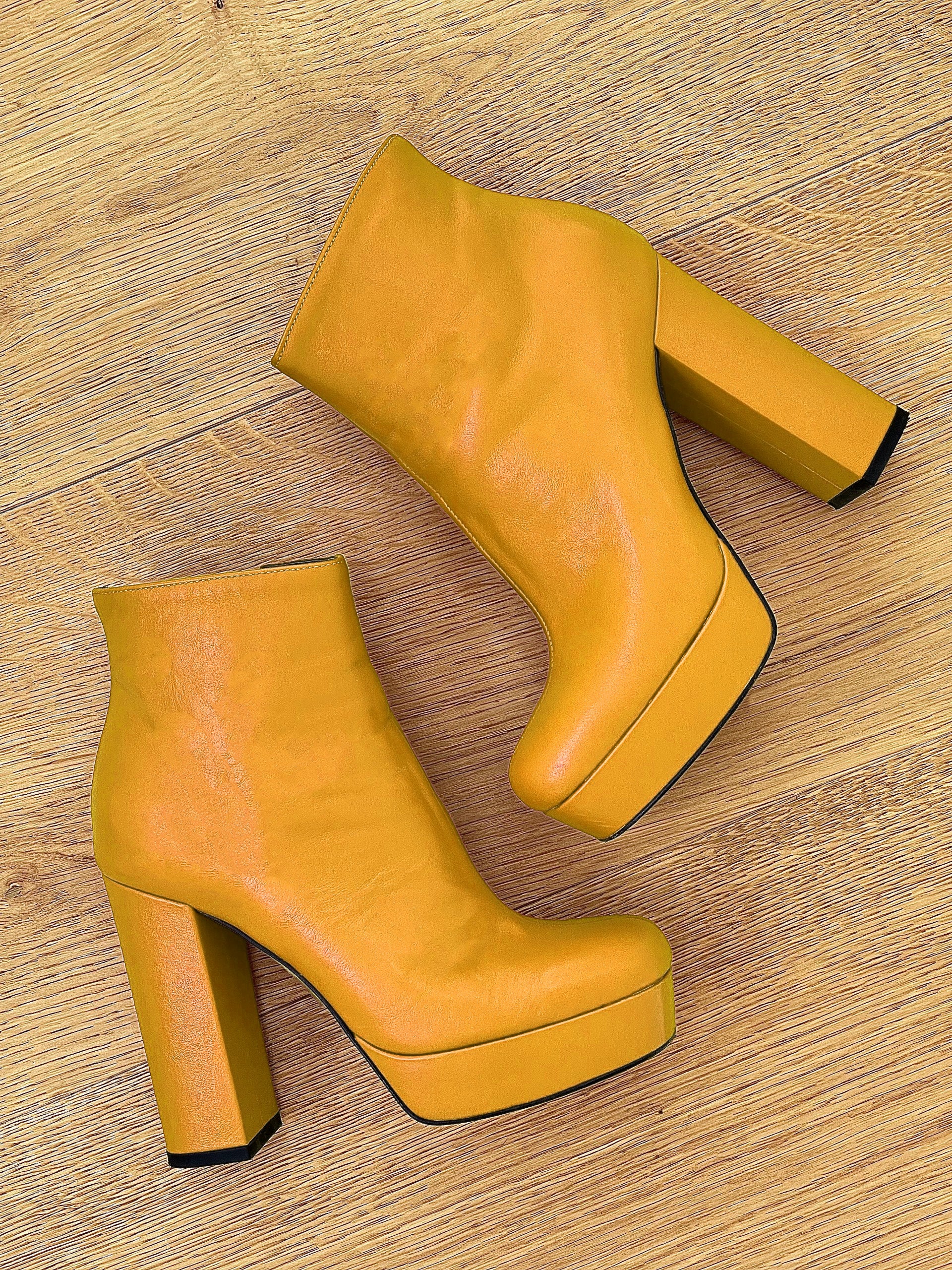 Stivaletti a punta semiquadra in pelle tacco 12cm e plateau 3cm.