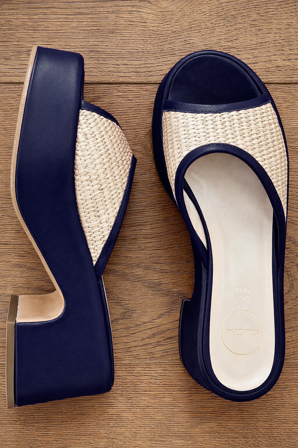 Sandali mules zeppa media tacco largo.