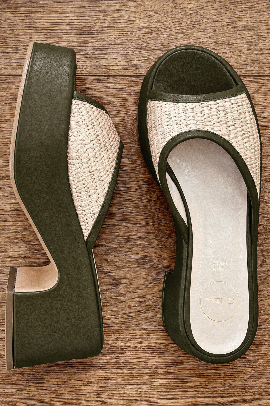 Sandali mules zeppa media tacco largo.