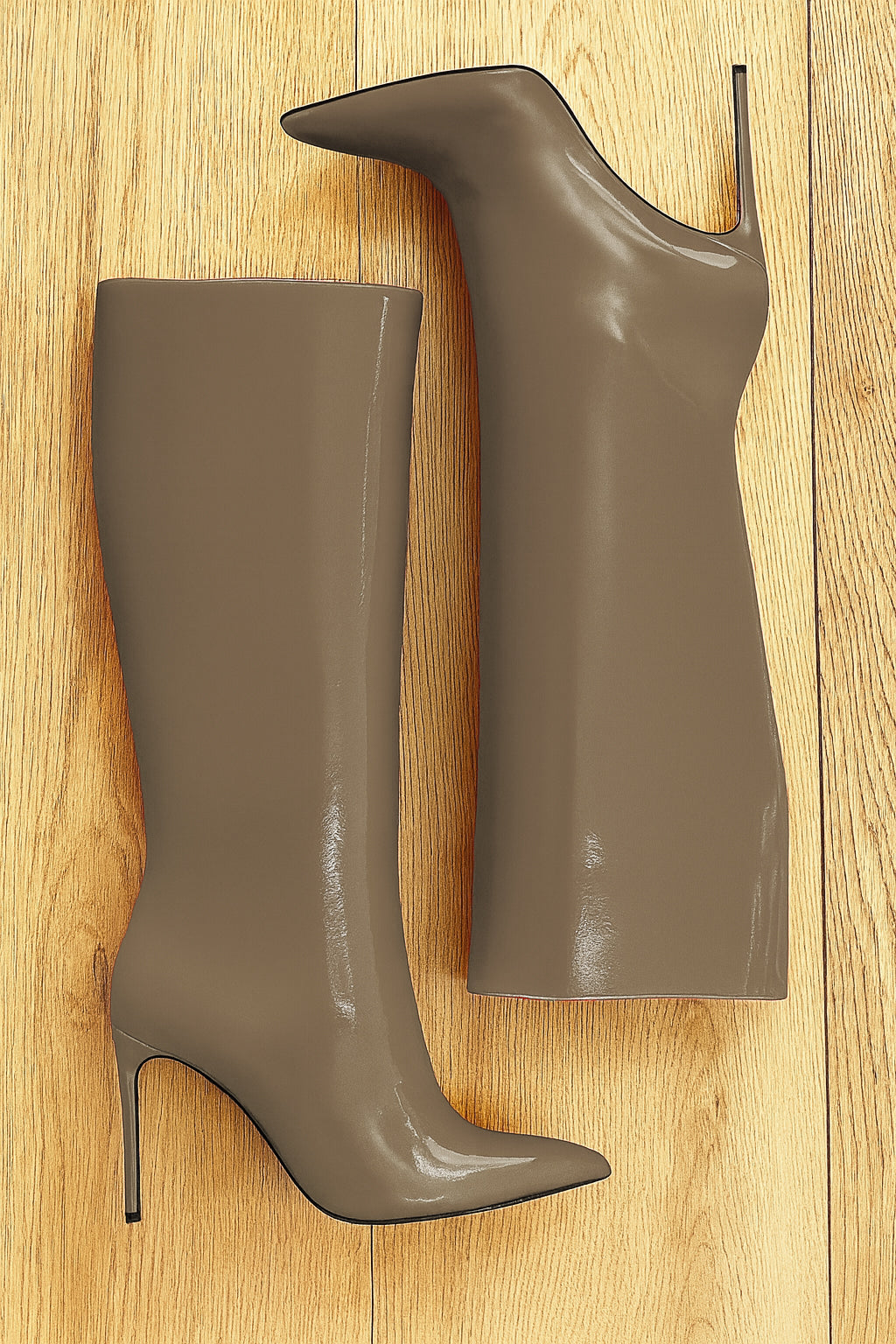 Stivali alti tubolari punta sfilata tacco a spillo.