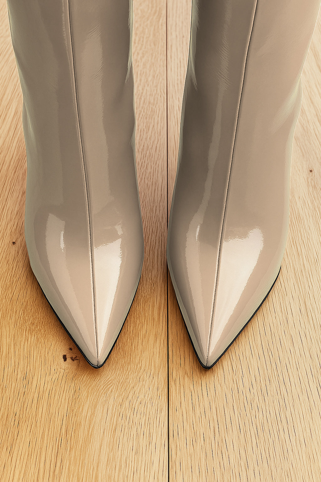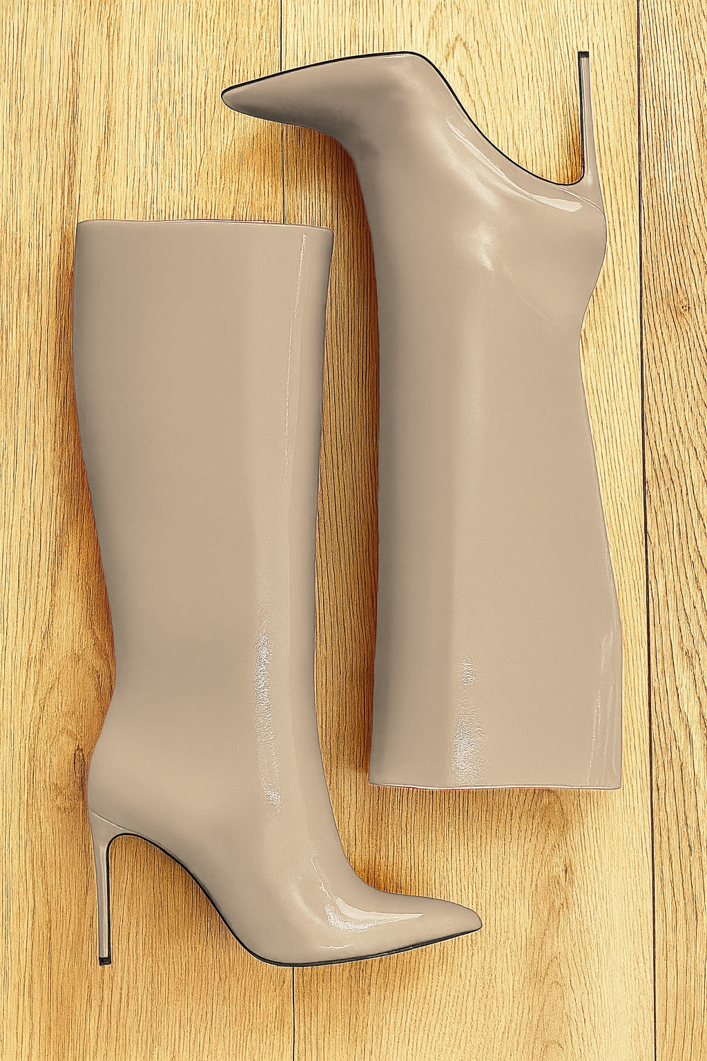 Stivali alti tubolari punta sfilata tacco a spillo.