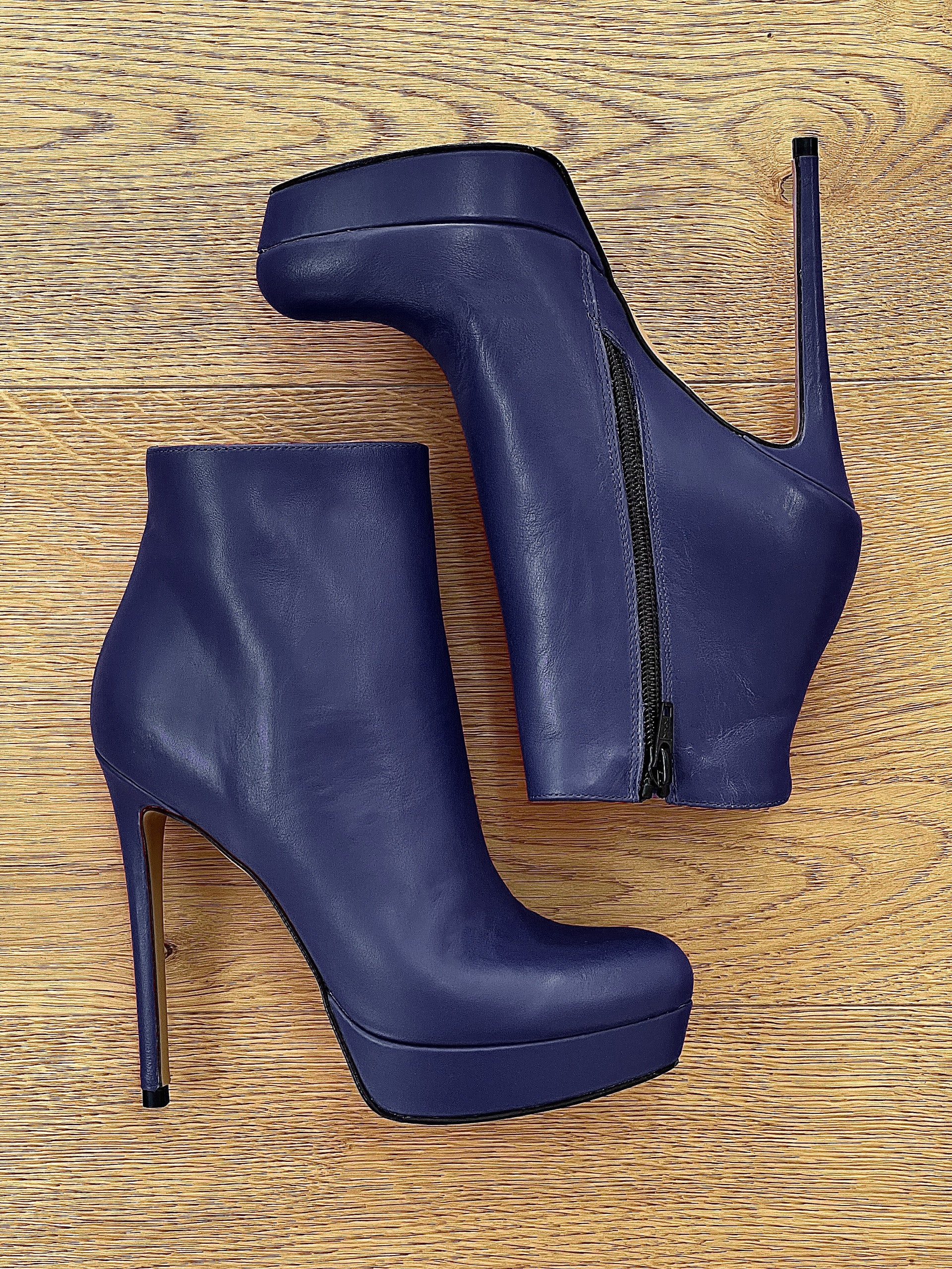 Stivaletti alti punta tonda in pelle tacco 12cm e plateau 2cm.