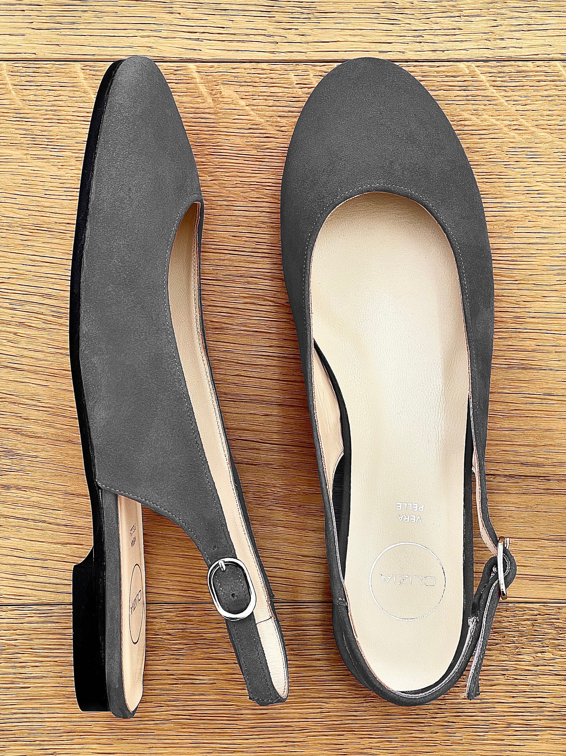 Ballerine punta tonda scamosciate.