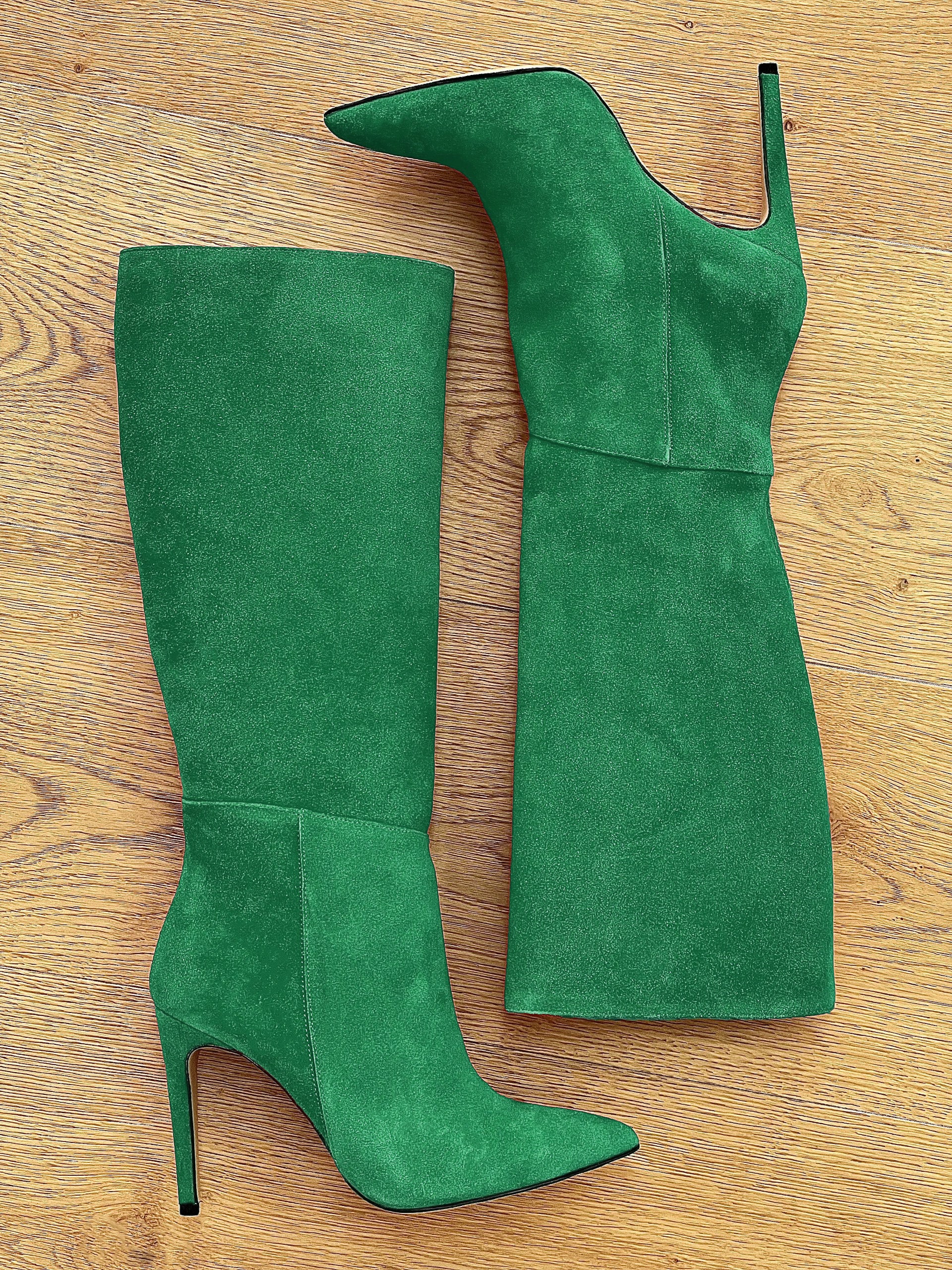 Stivali tubolari punta sfilata scamosciati tacco a spillo 10cm.