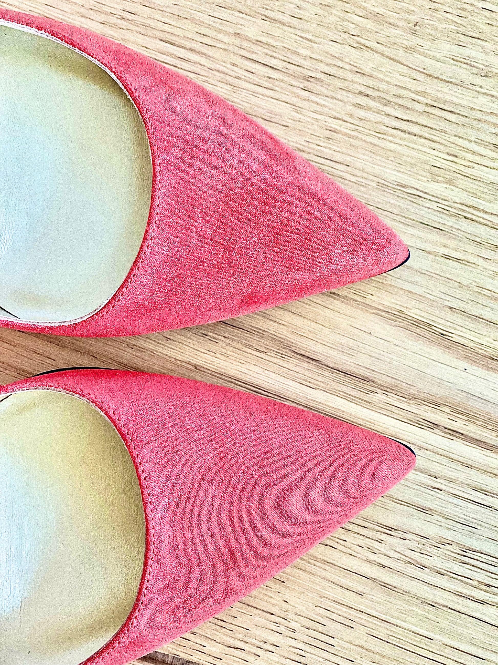 Décolleté a punta sfilata in tessuto polvere tacco a spillo 10cm.
