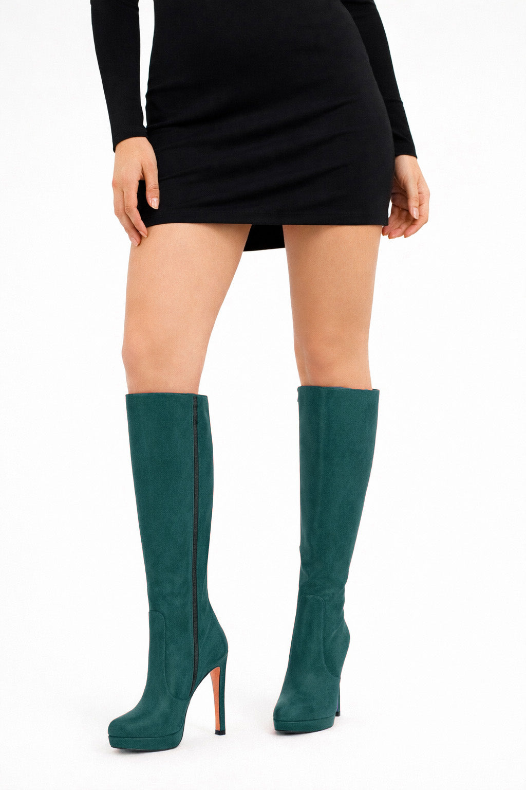 Stivali alti eleganti punta tonda plateau.
