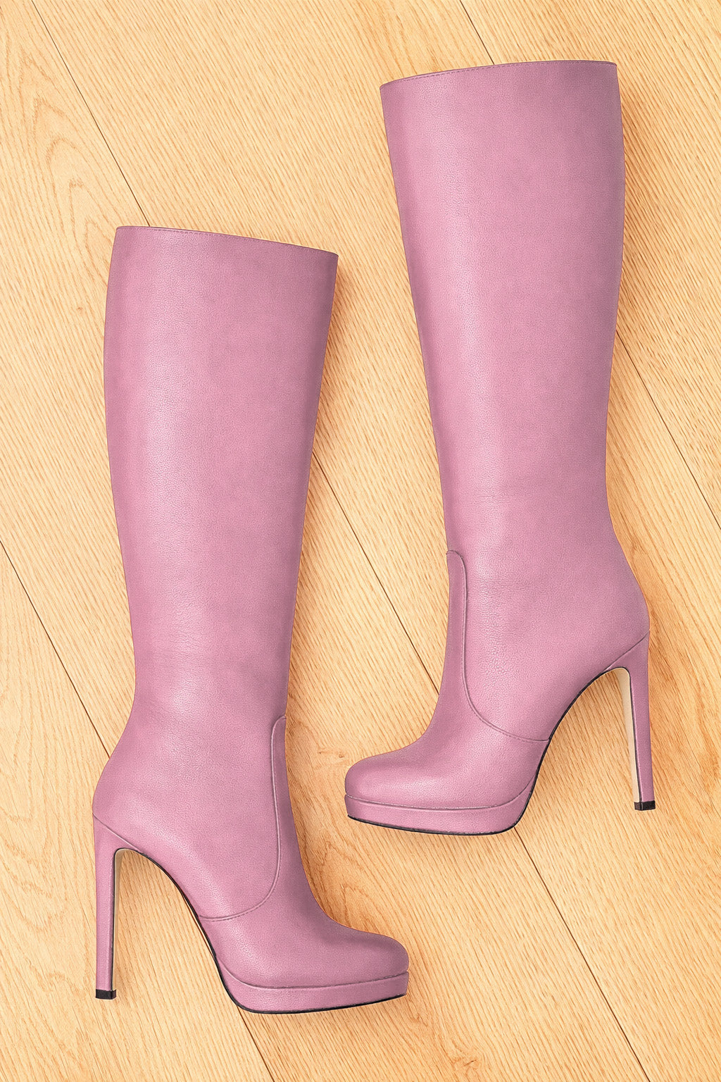 Stivali alti eleganti punta tonda tacco sottile.