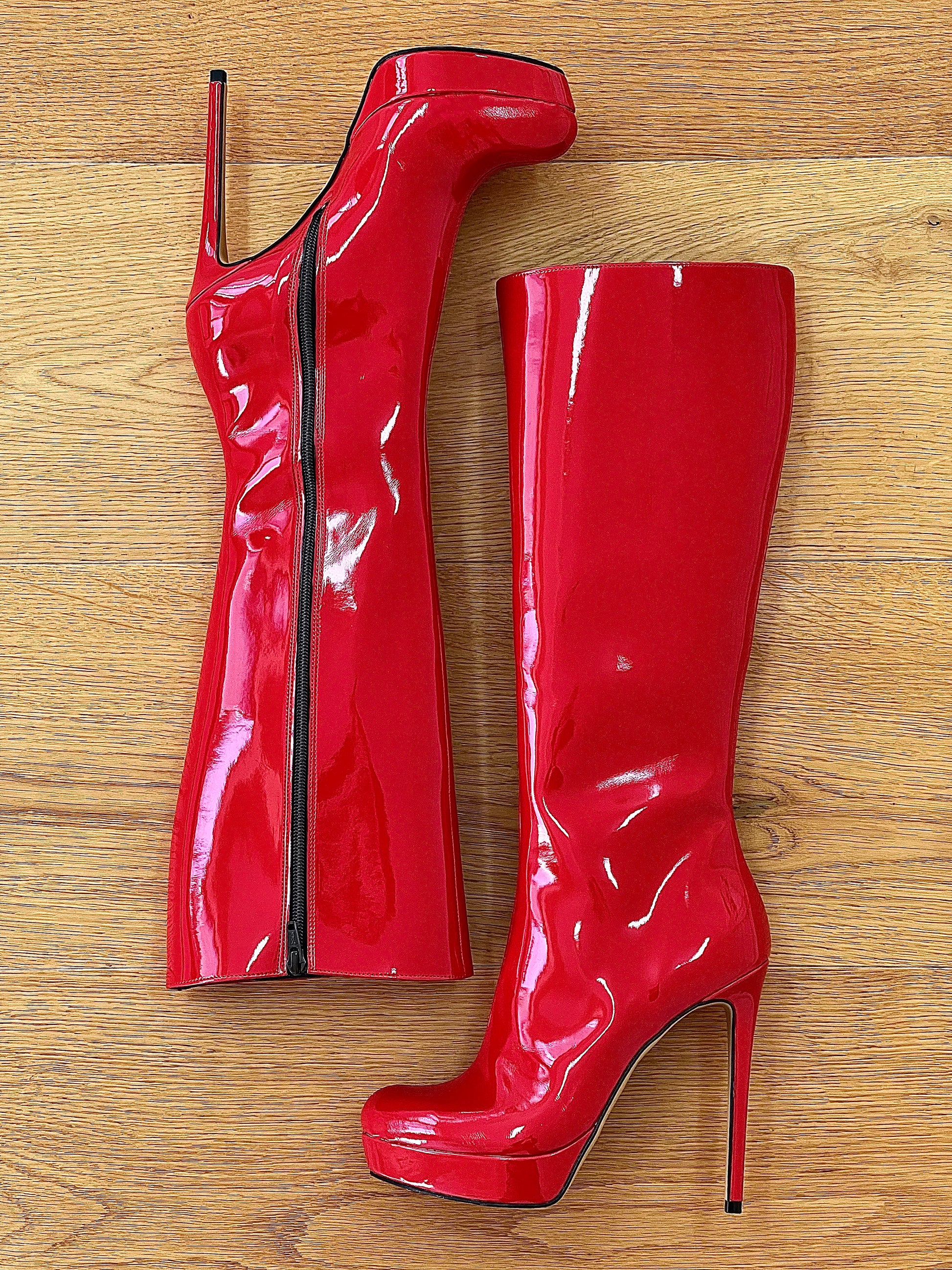 Stivali alti punta tonda plateau tacco a spillo.